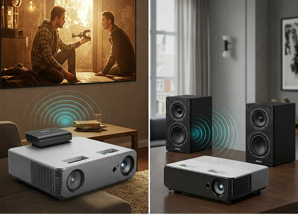 Most projectors today do include built-in speakers, and for quick use in a bedroom, small apartment, or casual movie night, they’ll get the job done. However, you’ll quickly notice their limitations: built-in speakers often sound flat, lack bass, and don’t fill larger spaces well. For a true home theater vibe, outdoor movie night, or even gaming, external speakers or a soundbar will make a huge difference. Many projectors now come with Bluetooth and audio output ports, so you can easily pair them with your preferred sound system. Think of the built-in speakers as a convenient backup—great when you don’t want to fuss with extra gear. But if you’re serious about the immersive experience of booming sound and crystal-clear dialogue, investing in external audio is absolutely worth it.